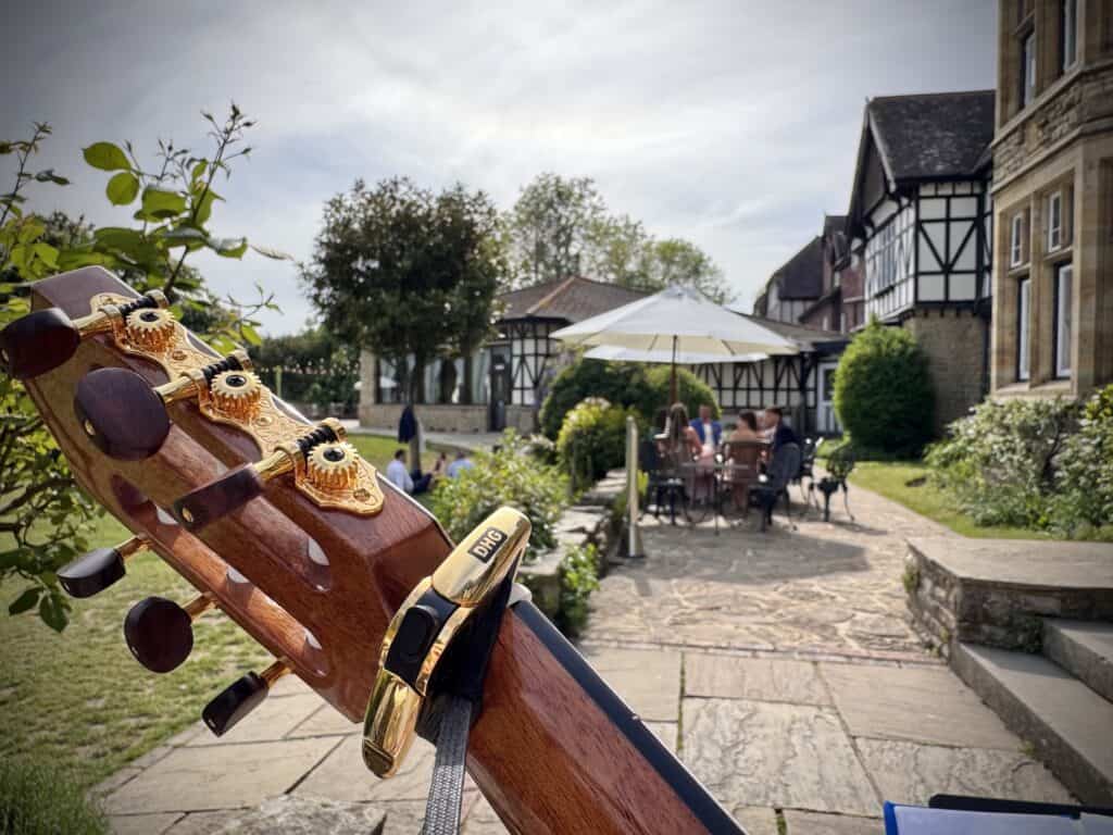Last weekend, I had the pleasure of performing for the lovely Olga & Dario’s wedding at The Ravenswood in West Sussex as part of the D&L Acoustic Duo alongside my vocalist Lizzy. We were invited to provide live music for the drinks reception at this stunning countryside wedding venue, and it couldn’t have been a more beautiful afternoon.